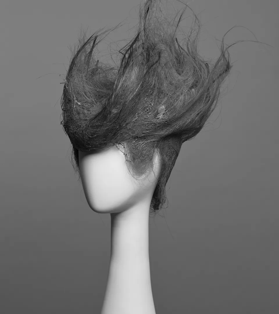 Headpieces born from collaborations with leading fashion brands—SOMARTA, YUIMA NAKAZATO, ANREALAGE, LIMI feu, and writtenafterwards. The work explores the intersection of hair design and avant-garde fashion, transforming traditional notions of adornment into sculptural art.