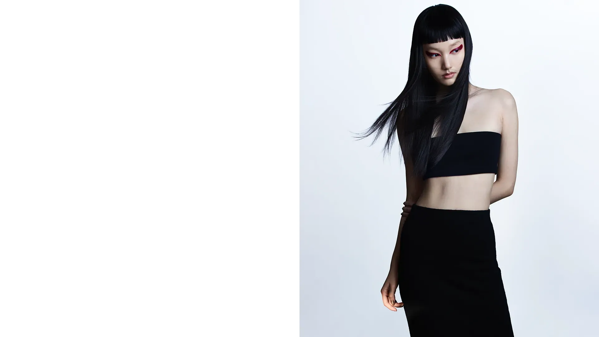 Eyeliner becomes a calligraphic gesture, while lips embody power and grace.