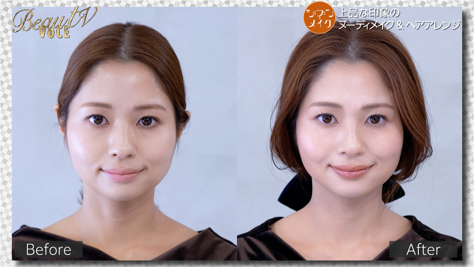 『あなたも知らなかった魅力をより一層引き出すためのメイクやヘアスタイルを提案する「ジブン・メイク」』 のコーナーで、“上品な印象のヌーディメイク&ヘアアレンジ”をレクチャーしました。